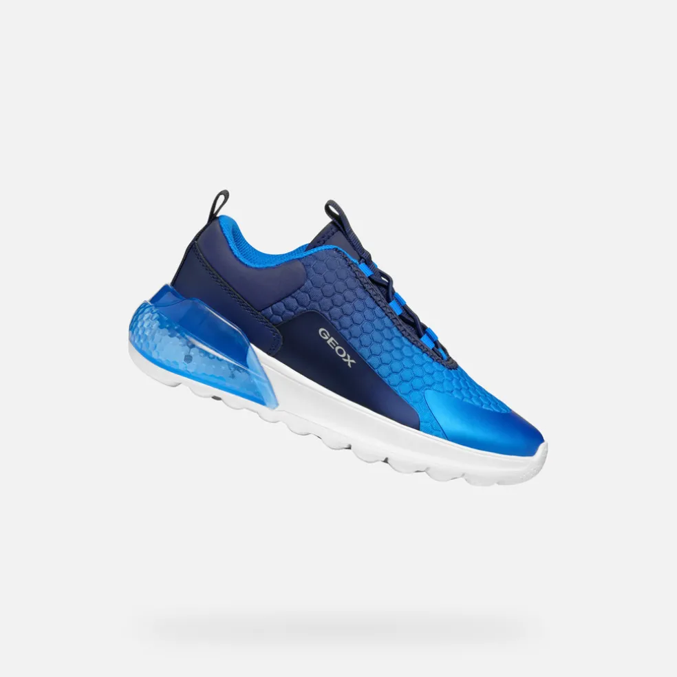 Flexibler, leichter Junior-Low-Cut-Sneaker im sportlich-modernen Design mit ausgezeichneter Stoßdämpfung. In dieser Version in Marineblau und Hellblau zeigt sich Activart Illuminus im Active-Style mit einem Obermaterial aus bedrucktem Elasthan, das mit widerstandsfähigem und schützendem Thermokunstsoff TPU veredelt ist. Das bequeme Modell ist der ideale Begleiter in der Schule und beim Spielen und fügt durch die Lichter mit Kaleidoskop-Effekt in der Sohle jedem Look eine lebendige Note hinzu.