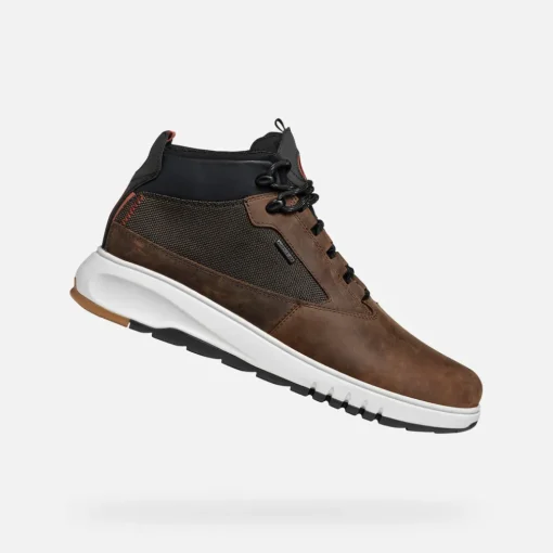 Wasserdichte und extra atmungsaktive Herren-Schnürstiefelette im dynamischen Funktionslook. Das Modell wird hier in der klassischen Kombination Braun und Dunkelbraun vorgeschlagen und eignet sich mit dem im Hiking-Stil gehaltenen Schaft aus Pull-up-Leder und Textil für Ausflüge und Freizeitaktivitäten. Aerantis™ 4X4 ABX zeigt sich in einem innovativen und vielseitigen Active-Design, perfekt für die Freizeit, auch bei Schlechtwetter.