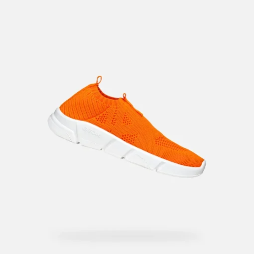 Bequemer Slip-on-Junior-Sneaker mit stoßgedämpfter Sohle im Active-Design. Aril besticht durch einen lebhaften Schaft aus orangenem Gewebe in Strickoptik in Kombination mit einer trendigen Chunky-Sohle. Das weiche und leichte Modell verleiht lässigen Sommeroutfits für Schule und Freizeit einen originellen Touch.