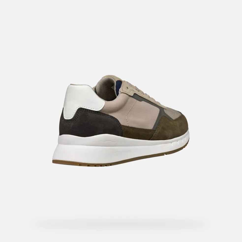 Herrensneaker im urbanen Runningstil, der Komfort und Atmungsaktivität bietet. Das Modell wird in einer nicht alltäglichen Farbvariante in Militärgrün mit beigen Details vorgeschlagen und ist aus Veloursleder und Textil gefertigt. Branthon garantiert Wohlbefinden für den Fuß von morgens bis abends und fügt Alltagsoutfits eine dynamische Note hinzu.