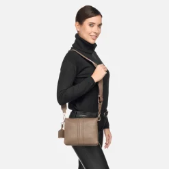 Praktische Damen-Umhängetasche im schlichten Design, ideal für Alltagsoutfits. Das Modell aus weichem Walkleder präsentiert sich hier im immer aktuellen Farbton Taupe, der mit unzähligen Looks kombiniert werden kann. Clarissy ist ein moderne Messengertasche, perfekt für die täglichen Wege durch die Stadt, wie für entspannte Spaziergänge am Wochenende.