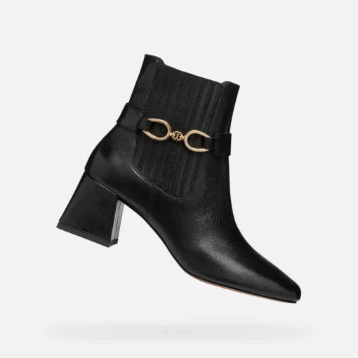 Feminine Damenstiefelette mit bequemem mittelhohem Absatz im ansprechend dynamischen Look. Das Modell aus glänzendem Leder weist ein goldfarbenes Zierelement aus Metall auf und wird hier in der urbanen Version in Schwarz präsentiert. Coronilla ist ein bequemes und atmungsaktives Modell, der perfekte Begleiter für den Alltag, sei es bei Meetings im Büro oder Unternehmungen am Abend.