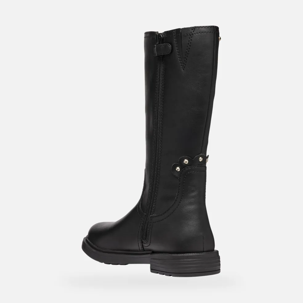 Mädchenstiefel mit Nieten im urbanen und trendigen Design. Das Modell, hier in Schwarz, ist ideal, um lässigen Alltagsoutfits einen aktuellen Twist zu verleihen. Eclair ist aus Material in Lederoptik gefertigt und vereint Komfort und Stil.
