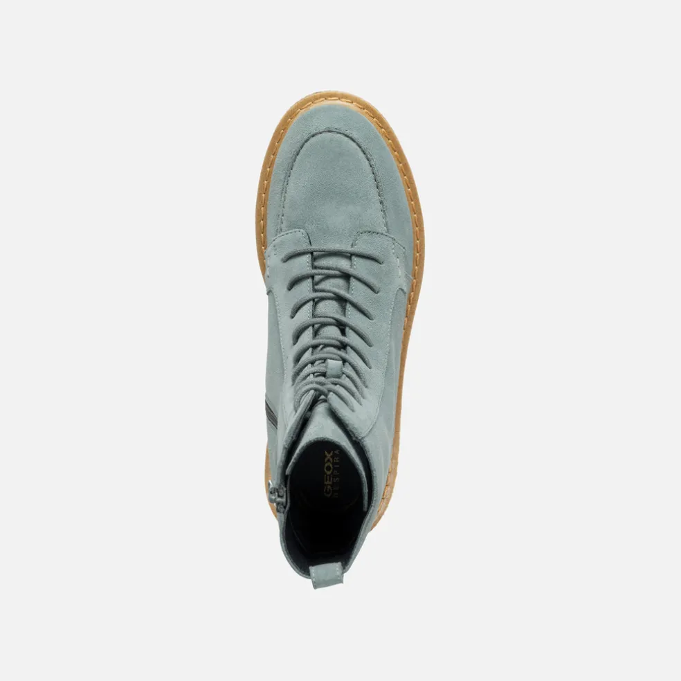Damen-Schnürstiefelette mit Flatform-Sohle in lässiger und alltagstauglicher Optik. Das bequeme und atmungsaktive Modell hat ein Obermaterial aus Veloursleder und wird hier in einer dezenten und alternativen Variante in Salbeigrün vorgeschlagen. Elidea ist der ideale Begleiter für die Stadt oder bei Ausflügen, da er von morgens bis abends Komfort bietet.