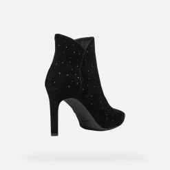 Spitz zulaufende Damenstiefelette im aktuellen und femininen Stil. Das bequeme und atmungsaktive Modell hat einen Oberschuh aus weichem Wildleder, hier im eleganten Schwarz, und wird von glänzenden Strasssteinen und Nieten aufgewertet. Faviola fügt der Abendgarderobe eine elegante Note hinzu und rundet jeden ausgesuchten Look perfekt ab.