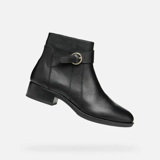 Bequeme und atmungsaktive Damenstiefelette im alltagstauglichen Stil mit edler Optik. Das Modell aus Glattleder und Material in geprägter Lederoptik wird durch ein Riemchen aufgewertet und wird hier in Schwarz vorgeschlagen, ein Must-have jeder Damengarderobe. Felicity ist ein für das Stadtleben gedachter Schuh, der sowohl bei allen Unternehmungen zu Fuß oder im Büro für maximales Wohlbefinden sorgt und zu formellen und weniger formellen Outfits getragen werden kann.