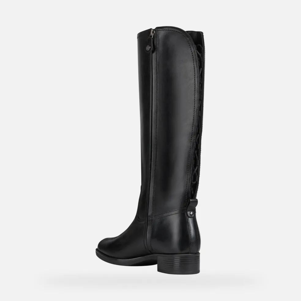 Felicity ist ein schwarzer Glattlederstiefel mit klassischem, vom Reitsport inspiriertem Design, der ebenso vielseitig wie zeitlos ist. Er ist auf Tragekomfort und Atmungsaktivität ausgelegt und ergänzt das informelle Abendoutfit ebenso wie den Bürolook durch eigenen Charakter.