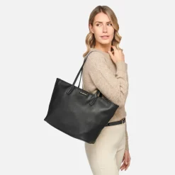 Maxi-Damenshopper zum Tragen über die Schulter im modernen Urban-Look. Aus Material in Walklederoptik, hier im schlichten und vielseitigen Farbton Schwarz. Gardren S ist eine funktionale und geräumige Tasche, die auch für das Büro geeignet ist und weist zwei Henkel und eine praktische Pochette an der Innenseite auf.