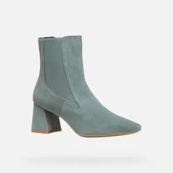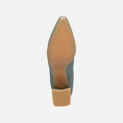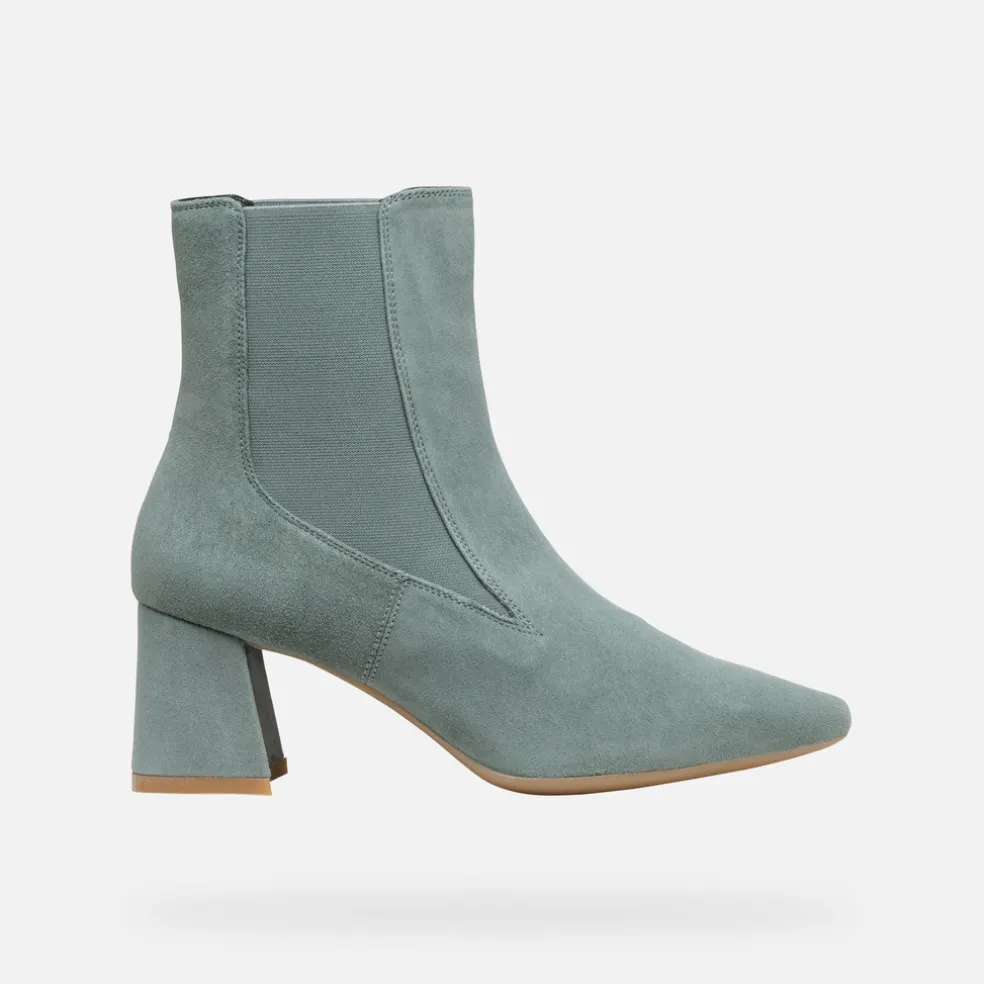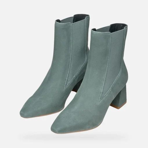Leichte und atmungsaktive Damenstiefelette mit spitz zulaufender Zehenpartie mit bequemem, mittelhohem Absatz. Das Modell aus geschmeidigem Veloursleder bietet die ideale Kombination aus Stil und Wohlbefinden und wird hier in der ausgesuchten Farbvariante in Salbeigrün vorgeschlagen. Giselda ist dann der schmalen Silhouette ein feminines und edel wirkendes Modell, das perfekt zu Business-Looks und eleganter Garderobe passt.