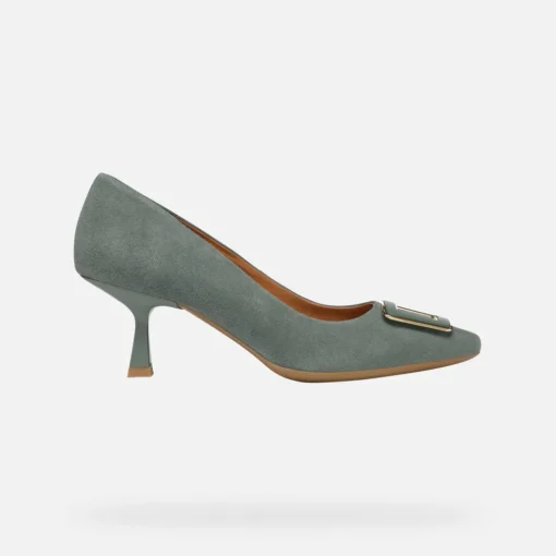 Damenpumps mit niedrigem, dünnem Absatz in urbaner Optik, der Leichtigkeit und Atmungsaktivität bietet. Das Modell aus geschmeidigem Wildleder wird von einem edlen Schmuckelement aufgewertet und präsentiert sich hier im schönen Salbeigrün. Giselda R vervollständigt Büro-Outfits oder die Abendgarderobe und sorgt für Wohlbefinden der Füße in jeder Situation.