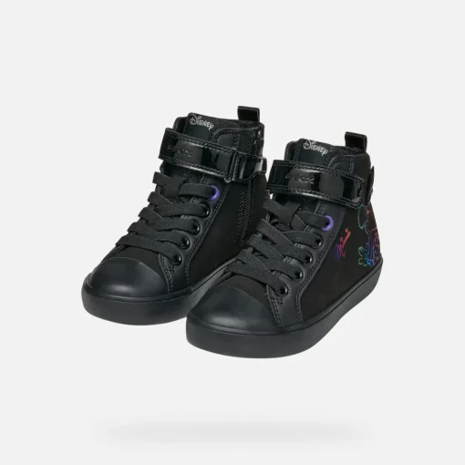 Bequemer und modischer Junior-Mid-Cut-Sneaker, ein Modell aus der Zusammenarbeit zwischen Geox und Disney. Gisli ist der perfekte Schuh, hier in der Version in Schwarz, um lässige City-Looks oder Outfits für die Schule abzurunden. Das Modell aus Material in Velourslederoptik und Lacklederoptik zieht die Blicke mit den fröhlichen Verzierungen am Oberschuh auf sich, die Minnie gewidmet sind.