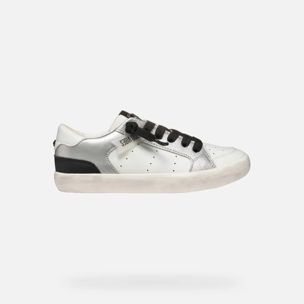 Low-Cut-Sneaker für Mädchen, ideal zur modischen Abrundung lässiger Outfits. Gisli, hier in der Version in Weiß und Silber, spricht mit seinem klassischen Design in moderner Interpretation auch größere Mädchen an. Das atmungsaktive, bequeme und leicht zu kombinierende Modell ist aus Material in Lederoptik und in perlenschimmernder Nubuklederoptik gefertigt.