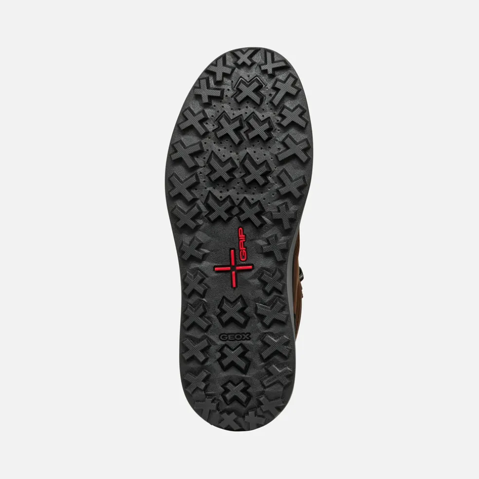 Wasserdichte und atmungsaktive Herrenstiefelette mit einer sehr griffigen Sohle. Das Modell aus Pull-up-Leder und Material in Lederoptik zeichnet sich durch Details im Hiking-Stil aus und wird hier in der eleganten Farbkombination Dunkelbraun und Schwarz vorgeschlagen. Granito + Grip ABX garantiert Komfort und Schutz auch an kalten und regnerischen Tagen und ist der perfekte Begleiter in der Stadt oder unterwegs.