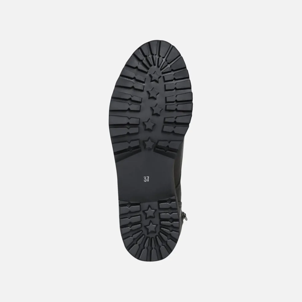 Die ausgeprägt zeitgemäßen Linien von Hoara aus schwarzem Nappaleder lassen den urbanen Charme einer lässigen Stiefelette neu aufleben, die ideale Ergänzung zu informellen Abendlooks, ohne auf Tragekomfort und Atmungsaktivität verzichten zu müssen.