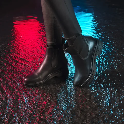 Atmungsaktive und regenfeste Damenstiefelette im urbanen Stil. Iridea ABX zeigt sich als klassische Version in schwarzem Glattleder und mit elastischen Einsätzen, die das Anziehen erleichtern. Das bequeme, warme und wasserdichte Modell ist ein Must-have für die kalte Jahreszeit und verleiht Citylooks eine aktuelle Note.