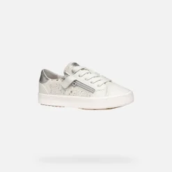 Flexibler und atmungsaktiver Low-Cut-Sneaker für Mädchen mit urbanem und femininem Look. Der weiße Schaft hat ein dezentes Punktemuster in Silber und ist für einen bequemen und schnellen Einstieg mit einem praktischen Seitenreißverschluss ausgerüstet. Das Modell aus bedrucktem Wildleder und Material in Lederoptik fügt lässigen Sommeroutfits einen glamourösen Touch hinzu.