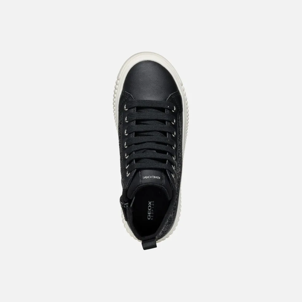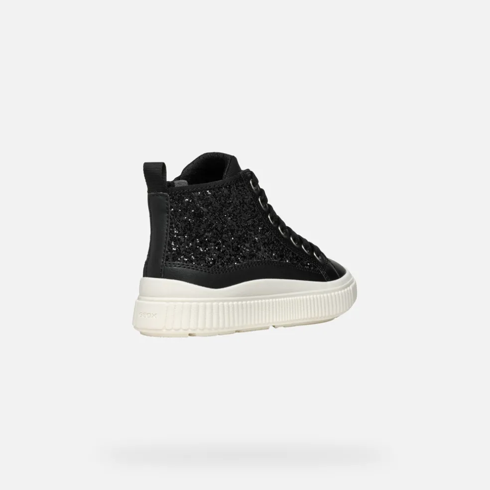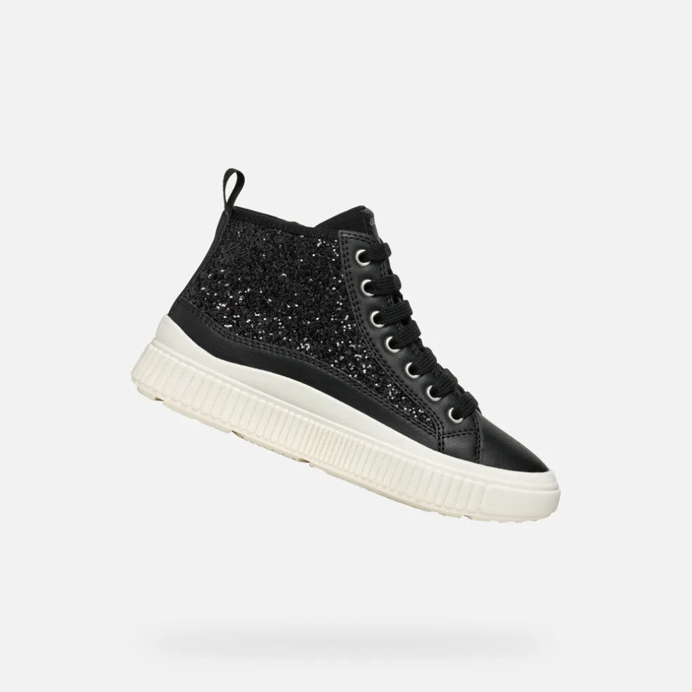 Mid-Cut-Sneaker für Mädchen im femininen Design mit Glam-Faktor, der auch größere Mädchen anspricht. In dieser glänzenden Variante in Schwarz eignet sich Laquinny perfekt, um Alltagslooks einen lässig-schicken Twist hinzuzufügen. Das Modell aus Glittergewebe und Material in Lederoptik ist leicht und atmungsaktiv und bietet ausgezeichnete Stoßdämpfung.