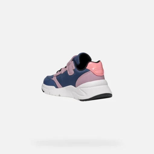Leichter und stoßgedämpfter Low-Cut-Sneaker für Mädchen im Running-Design. Das Modell in der Farbkombination in Avioblau und Dunkelrosa mit glitzernden Seitenapplikationen ist der perfekte Schuh für die Schule oder zu sportlichen Alltagsoutfits. Loftus ist ein flexibles, atmungsaktives Modell aus Material in Lederoptik und Nylon, das sich leicht anziehen lässt.