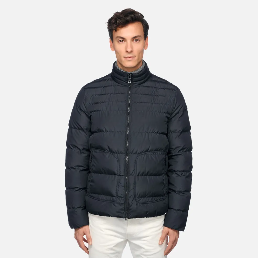 Kurze Herrenjacke mit Slim-Passform in lässigem und modernem Stil mit Wattierung aus recycelter Watte EcologicWARM. Magnete eignet sich sowohl für Alltagslooks als auch für Freizeitoutfits, hier in der eleganten Farbvariante Nachtblau. Das vielseitige Modell ist aus recyceltem Polyestertaft in matter Optik gefertigt und dank seiner wasserabweisenden und winddichten Eigenschaften besonders funktional.