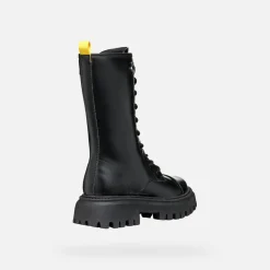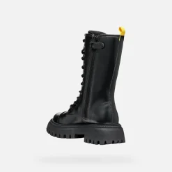 Moderne Mädchen-Schnürstiefelette, ideal als Ergänzung zu den Looks größerer Mädchen. Der in Schwarz gehaltene Oberschuh und das markante Design machen das Modell perfekt, um urbanen Alltagslooks einen glamourösen Akzent hinzuzufügen. Das Modell aus Material in gebürsteter Lederoptik ist mit Metalldetails verziert und weist eine moderne und trendige Chunky-Sohle auf.