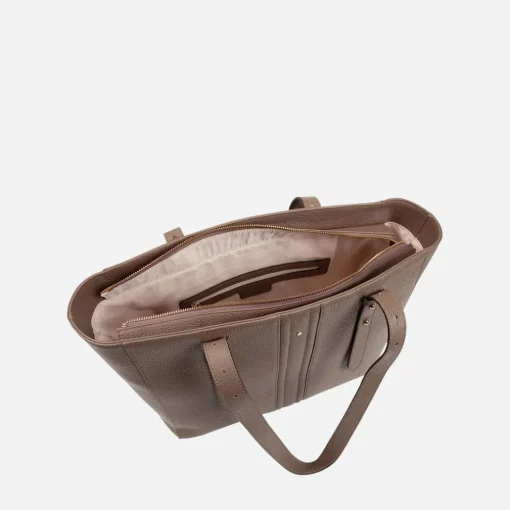 Praktischer und besonders geräumiger Damenshopper im frischen und modernen Stil. Das Modell aus Walkleder präsentiert sich hier im alternativen Farbton Taupe. Milleiny ist der perfekte Begleiter für die alltäglichen Weg in der Stadt. Die Tasche hat einen Metallreißverschluss und verstellbare Doppelhenkel mit Nieten.