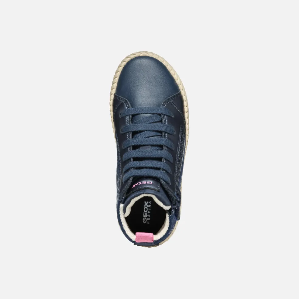 Atmungsaktiver Mid-Cut-Sneaker für Mädchen mit praktischem Seitenreißverschluss für leichten Einstieg im femininen Design. Das Modell wird hier in Marineblau mit kleinen Punkten vorgeschlagen und eignet sich ideal, um lässigen Looks in der Schule oder Freizeit einen leuchtenden Akzent hinzuzufügen. Das Modell besteht aus Material in Velourslederoptik und Material in Perlmutt-Lederoptik und hat für einen schnellen Einstieg einen praktischen Seitenreißverschluss.