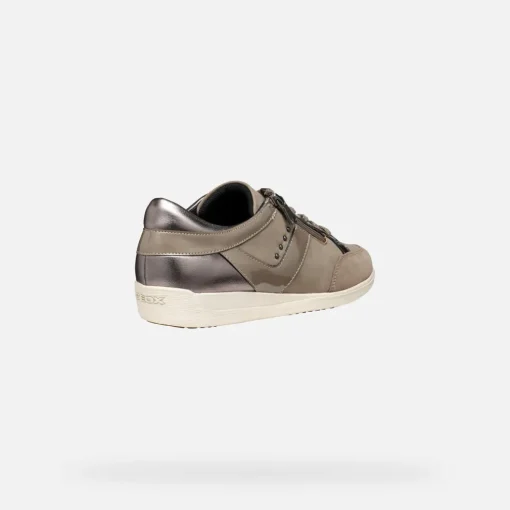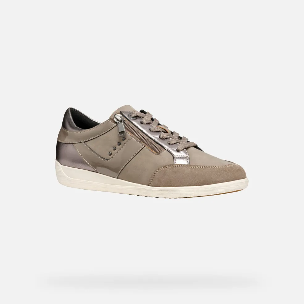 Low-Cut-Sneaker für Damen mit praktischem Seitenreißverschluss im lässigen und modernen Look, perfekt für das Leben in der Stadt. Das komfortable und atmungsaktive Modell präsentiert sich mit Oberschuh aus Material in Nubuklederoptik und Lacklederoptik in einer alternativen Farbkombination aus Metallic-Grau und Taupe. Myria ist ein sportlicher und einmalig alltagstauglicher Schuh mit leichtem Einstieg, der alle informellen Looks auf ungezwungene Weise abrundet.