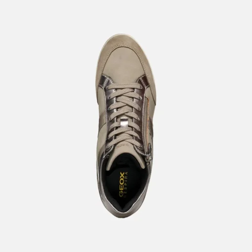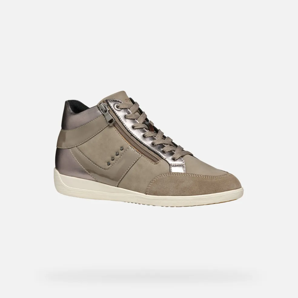 Mid-Cut-Sneaker für Damen mit praktischem Seitenreißverschluss im lässigen und modernen Look, perfekt für das Leben in der Stadt. Das komfortable und atmungsaktive Modell präsentiert sich mit Oberschuh aus Material in Nubuklederoptik und Lacklederoptik im edlen Taupe. Myria ist ein sportlicher und einmalig alltagstauglicher Schuh mit leichtem Einstieg, der allen informellen Looks einen besonderen Touch hinzufügt.