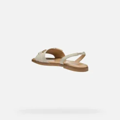 Atmungsaktive und leichte flache Damensandale im modernen urbanen Stil. Das Obermaterial aus softem Nappaleder präsentiert sich hier in einer ansprechenden Variante in Milchweiß und ist mit einer großen Metallschnalle verziert. Naileen setzt einen eleganten Akzent in minimalistischer Optik, der jedes Sommeroutfit aufwertet, und ist der ideale Schuh für das Leben in der Stadt, sowohl im Büro als auch in der Freizeit.