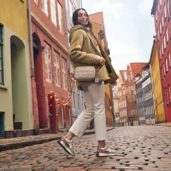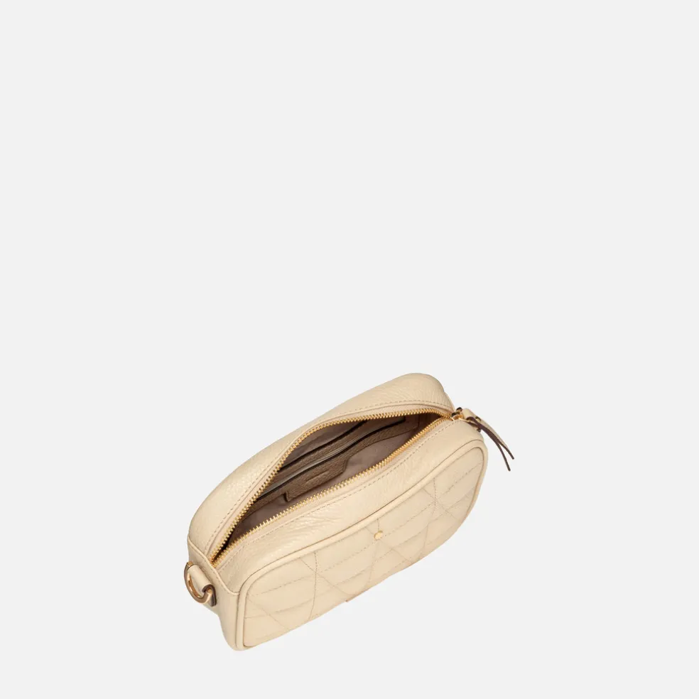 Praktische Damen-Umhängetasche mit modernem Design, um die Stadt mit freien Händen durchstreifen zu können. Das Modell aus weichem Walkleder mit besonderer, gesteppter Verarbeitung wird hier im femininen Milchweiß präsentiert. Narcisia ist kompakt und absolut funktional, ein schlichtes Accessoire für die Alltagsgarderobe, das jeden Look mit einer eleganten Note ergänzt.
