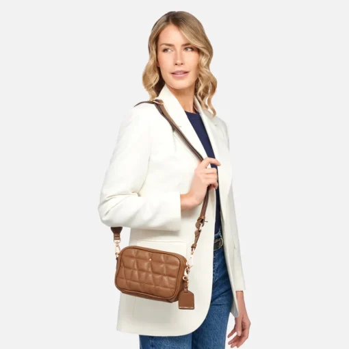 Praktische Damen-Umhängetasche mit modernem Design, um die Stadt mit freien Händen durchstreifen zu können. Das Modell aus weichem Walkleder mit besonderer, gesteppter Verarbeitung wird hier in einer warmen Farbvariante in Schlamm präsentiert. Narcisia ist kompakt und absolut funktional, ein schlichtes Accessoire für die Alltagsgarderobe, das jeden Look mit einer eleganten Note ergänzt.