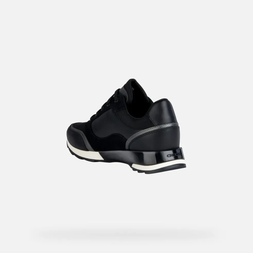 Wasserdichter Damensneaker im Running-Stil, Inbegriff von Komfort und Atmungsaktivität. Das Modell mit Obermaterial aus Nappaleder und Veloursleder präsentiert sich hier in einer dynamischen und vielseitigen Variante in Schwarz, die das schlichte, in jedem Detail sorgfältig gearbeitete Design unterstreicht. New Aneko ABX ist der perfekte Schuh, um lässigen City-Looks eine sportliche Note hinzuzufügen, auch bei Schlechtwetter.
