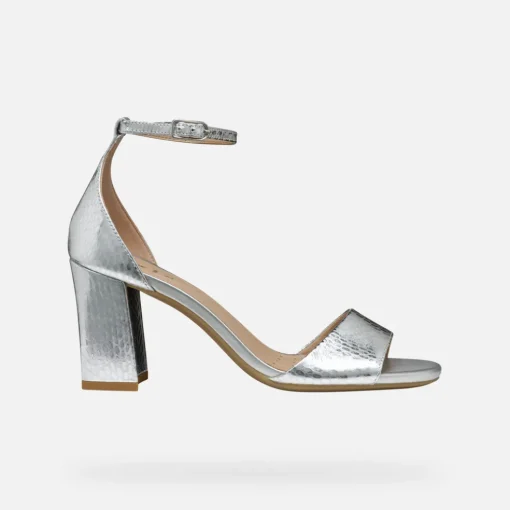 Elegante Damensandale mit hohem Absatz im zeitlosen Design und femininen Stil. Das Modell präsentiert sich hier in einer leuchtenden Variante in Silber mit einem Schaft aus Metallic-Leder. New Eraklia 80 ist ein bequemes und atmungsaktives Modell, das dank seiner Vielseitigkeit jedem mehr oder weniger Outfit einen speziellen Akzent verleiht.