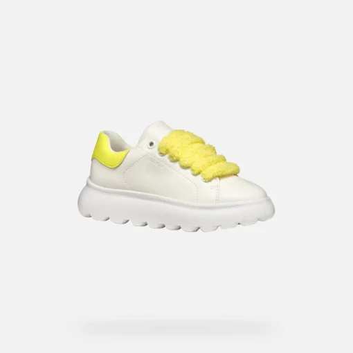 Sneakers basses pour fille au design urbain contemporain, idéales pour les plus grandes. Proposées ici en blanc, les Puffypop arborent des lacets en peluche jaune fluo, qui ajoutent une touche à la mode aux looks décontractés de l’école et des promenades en ville. Réalisées en matière à effet cuir, ces chaussures sont pensées pour une utilisation quotidienne et conjuguent style et confort grâce à leur semelle extérieure chunky.