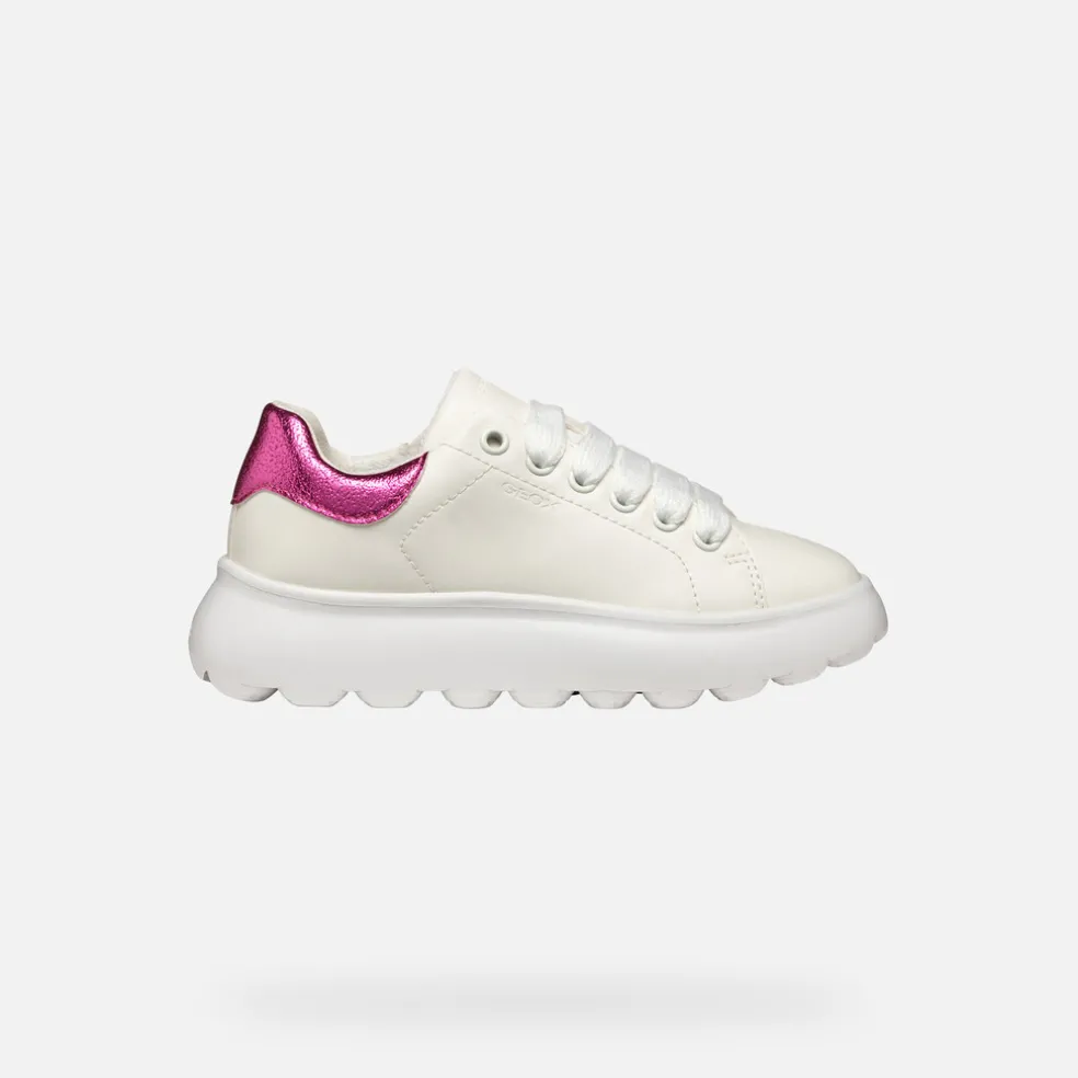 Low-Cut-Sneaker für Mädchen im aktuellen Urban-Look, ideal auch für größere Mädchen. Puffypop wird hier in Weiß mit pinken Kontrastdetails vorgeschlagen und fügt lässigen Looks in der Schule oder bei Unternehmungen in der Stadt einen modernen Twist hinzu. Das Modell aus Material in Lederoptik eignet sich für den Gebrauch im Alltag und vereint Stil und Komfort dank der Chunky-Sohle.