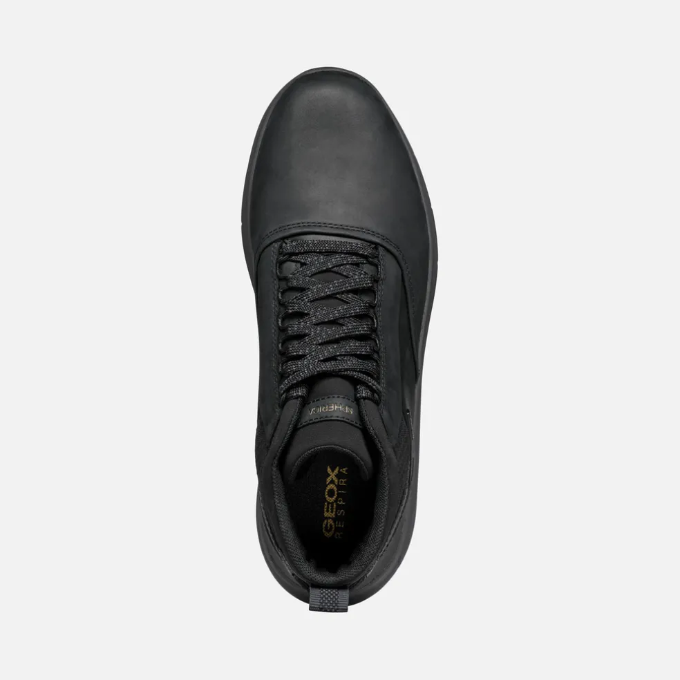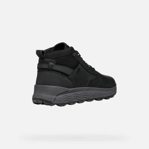 Wasserdichte Herrenstiefelette, die sportiven Look mit modernem Casual-Style vereint. Das Modell zeigt sich hier im markenten Farbton Schwarz mit einem Obermaterial aus Pull-up-Leder und Details aus Strickgewebe. Spherica™ 4×4 ABX garantiert auch bei starkem Regen Dynamik und perfekte Stoßdämpfung, ideal für die Stadt und die Freizeit.