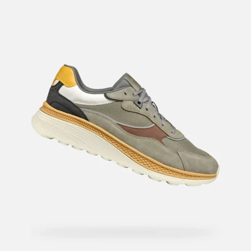 Herrensneaker, der maximalen Komfort, Atmungsaktivität und ausgezeichnete Stoßdämpfung garantiert. Das Obermaterial aus Mesh und Veloursleder wird hier in der schönen Farbkombination aus Salbeigrün und Braun vorgeschlagen und bringt das urbane Design im sportiven Stil perfekt zur Geltung. Spherica™ Actif X1 bietet eine extra Federwirkung und rundet Freizeitoutfits auch auf Reisen perfekt ab.