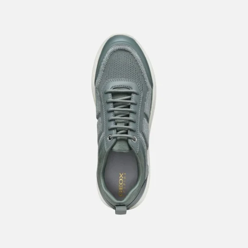 Ikonischer Low-Cut-Sneaker für Damen im sportiv-lässigen Stil mit edler Optik, der optimalen Komfort bietet. Das Modell ist aus einem Garn hergestellt, das von recycelten gebrauchten PET-Flaschen stammt, sowie Veloursleder, hier in der trendigen Farbvariante Salbeigrün. Spherica™ ist der ideale Freizeitschuh, da er ein Höchstmaß an Stoßdämpfung bietet und den ganzen Tag über ein leichtes Laufgefühl garantiert.