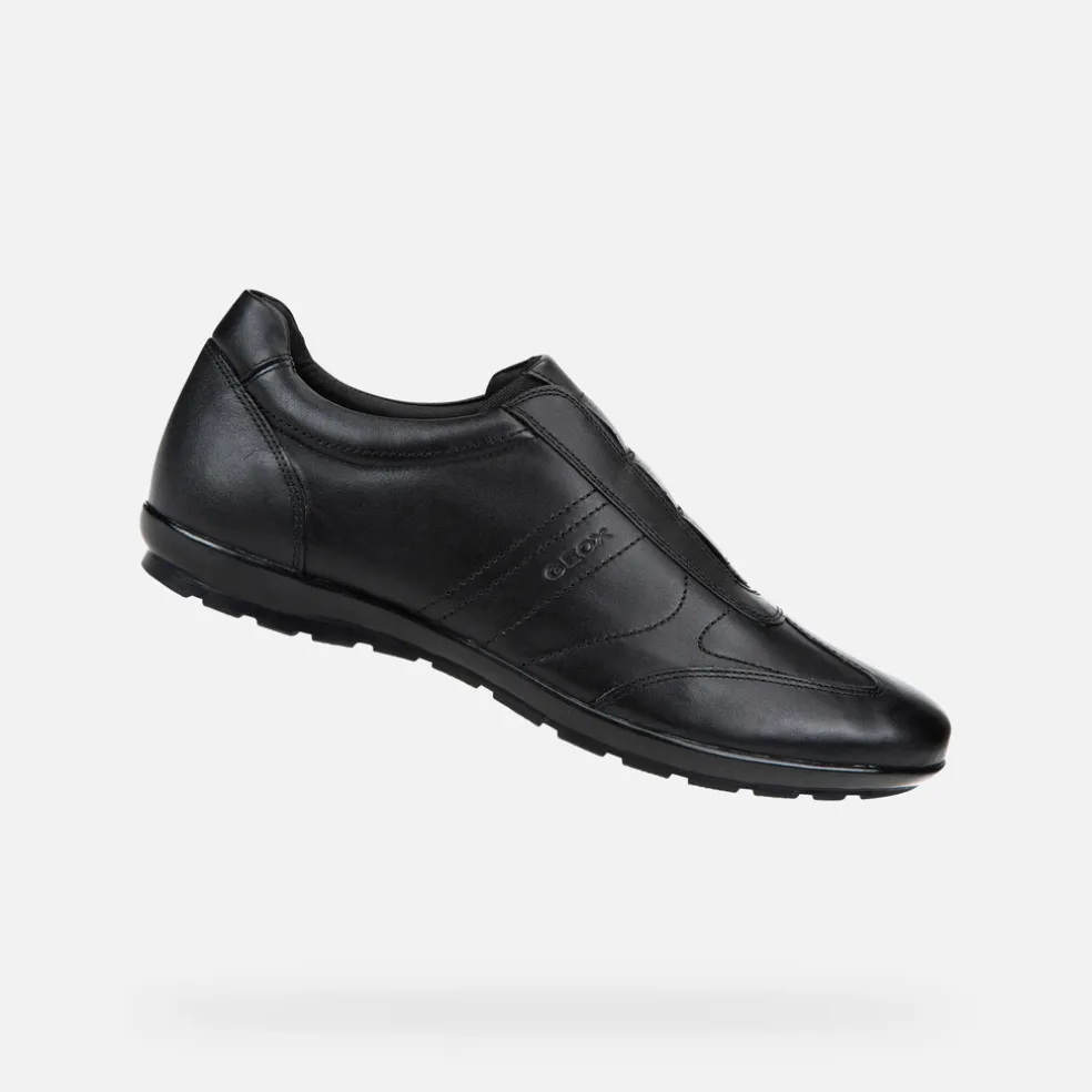 Bequemer, atmungsaktiver Slip-on-Herrenschuh im klassischen Stil.Symbol ist ein lässiger, vielseitiger Schuh, der hier als Slipper aus schwarzem Glattleder angeboten wird, um jedem Alltagslook einen modernen Stil zu verleihen.