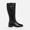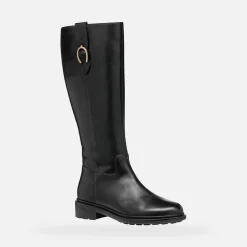Atmungsaktiver Damen-Kniestiefel mit bequemem niedrigem Absatz in urbaner Optik mit perfekter Stoßdämpfung. Das Modell zeigt sich hier in der zeitlosen Farbvariante in Schwarz und hat ein Obermaterial aus Glattleder mit einem goldfarbenem Zierelement. Walk Pleasure ist ein feminines und edel wirkendes Modell, der perfekte Schuh für mehr oder weniger formelle Kombinationen, mit dem den ganzen Tag über Komfort garantiert ist.
