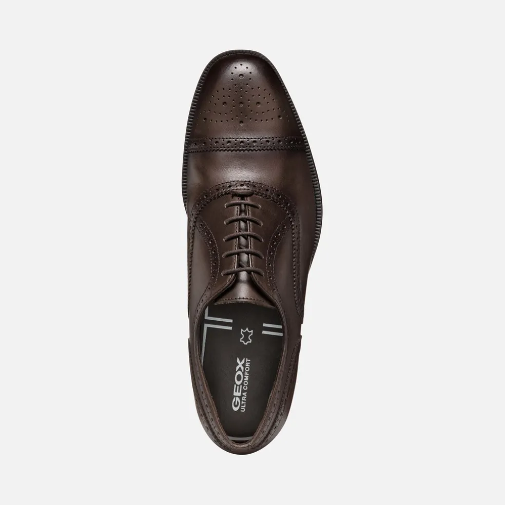 Formeller Herrenschnürschuh im schlichten Stil mit urbaner Optik, der für ein weiches und Gehgefühl mit ausgezeichneter Stoßdämpfung sorgt. Diese zeitgemäße Überarbeitung eines klassischen Derby-Schuhs mit Brogue-Details wird hier aus Glattleder im vielseitigen Dunkelbraun vorgeschlagen. Walk Pleasure™ F steht für besten Komfort und ausgezeichnete Atmungsaktivität und ist ideal zur Abrundung von Business-Looks und formeller Alltagsgarderobe.