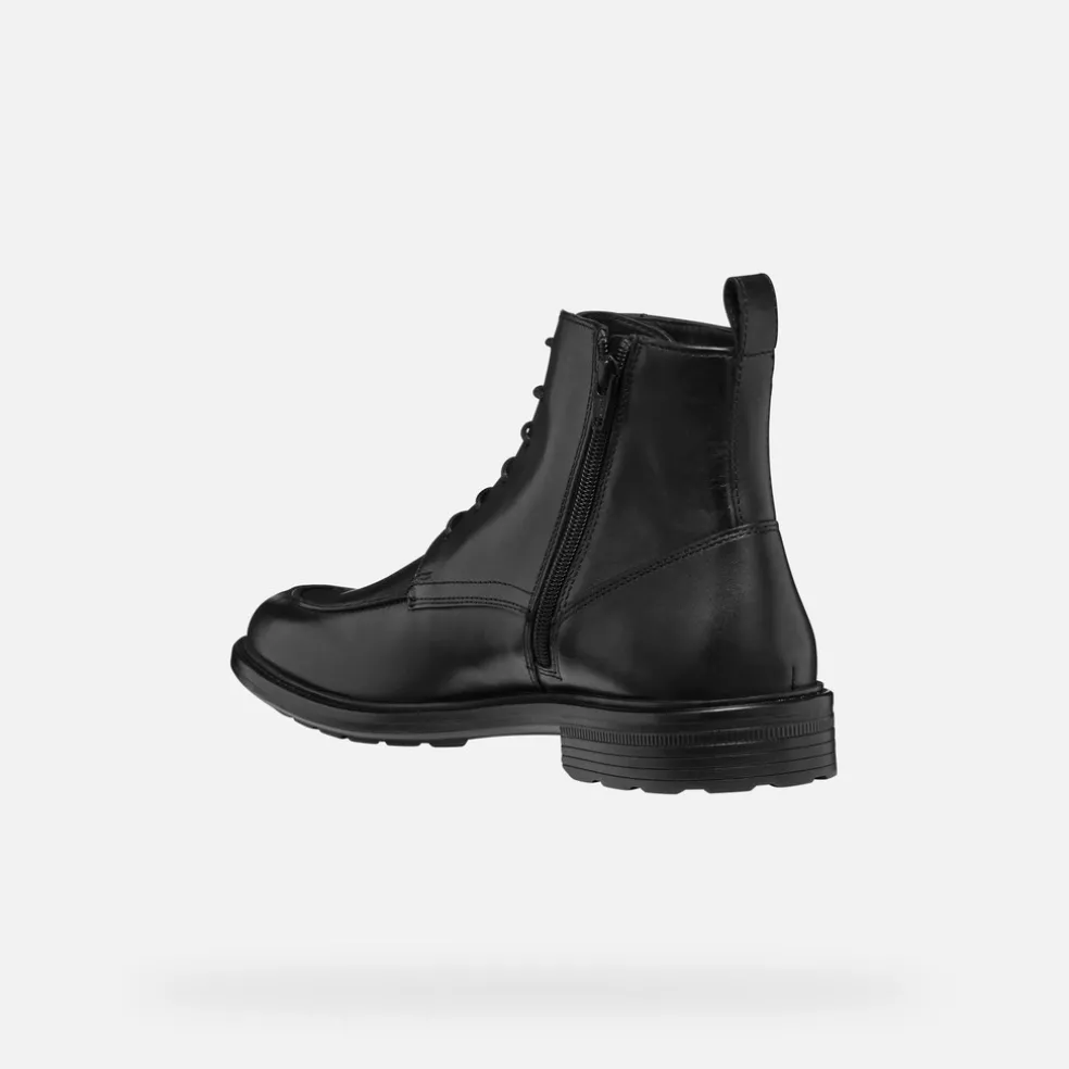Herren-Schnürstiefelette in urbaner Optik, die Komfort und optimale Stoßdämpfung bietet. Das Modell wird hier in der klassischen Variante in Schwarz vorgeschlagen und hat ein Obermaterial aus Glattleder mit aktueller Optik. Walk Pleasure™ ist ein Must-have jeder Herrengarderobe und gewährleistet den ganzen Tag über ein weiches und angenehmes Laufgefühl.