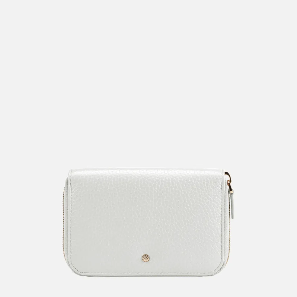 Praktisches mittelgroßes Damen-Portemonnaie mit Dehnfalte und Reißverschluss – der perfekte Begleiter im Alltag. Das Modell im schlichten und edlen Design aus weichem und strapazierfähigem gewalktem Leder in Weiß zeichnet sich durch eine geriffelte Zierniete aus. Das kompakte Modell bietet viel Platz für ein geordnetes Aufbewahren von Karten, Geldscheinen, Münzen und Dokumenten, um alles Wichtige immer dabei zu haben.