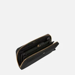 Praktisches großes Damen-Portemonnaie im schlichten Design mit Dehnfalte, Reißverschluss und ganz viel Platz. Das Modell aus weichem und strapazierfähigem gewalktem Leder präsentiert sich hier in einer zeitlosen schwarzen Variante. Durch die optimale Unterteilung lässt sich in dem mit Münzfach und mehreren Kartenfächern ausgestatteten Accessoire alles Wichtige ordentlich und sorgfältig aufbewahren.