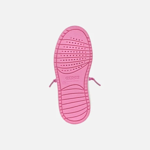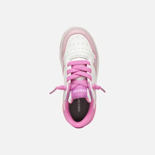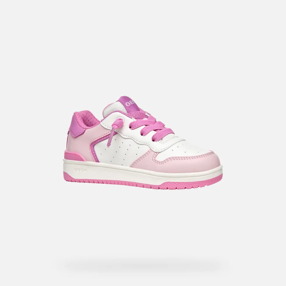 Bequemer und atmungsaktiver Junior-Low-Cut-Sneaker im Basketballdesign. In dieser Variante in hellem Rosa und Pink zeigt sich Washiba im trendigen Retro-Design. Das Modell aus Material in Lederoptik und Nylon eignet sich perfekt, um sportlich-lässige Looks für die Schule oder das Wochenende abzurunden.