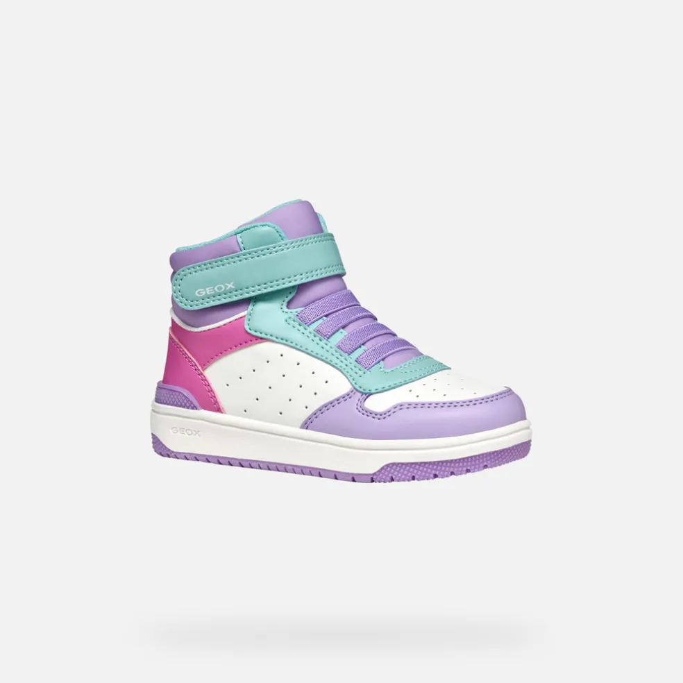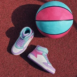 Dynamischer und bequemer Junior-Mid-Cut-Sneaker im Basketball-Stil mit Vintage-Vibe. Washiba – hier in einem Mix aus Lila und Wassergrün – ist der perfekte Schuh, um sportlichen Outfits einen trendigen Touch zu verleihen. Das atmungsaktive und stoßdämpfende Modell aus Material in Lederoptik und Elasthan ist der ideale Begleiter für jedes Abenteuer, ohne Abstriche in Sachen Wohlbefinden.