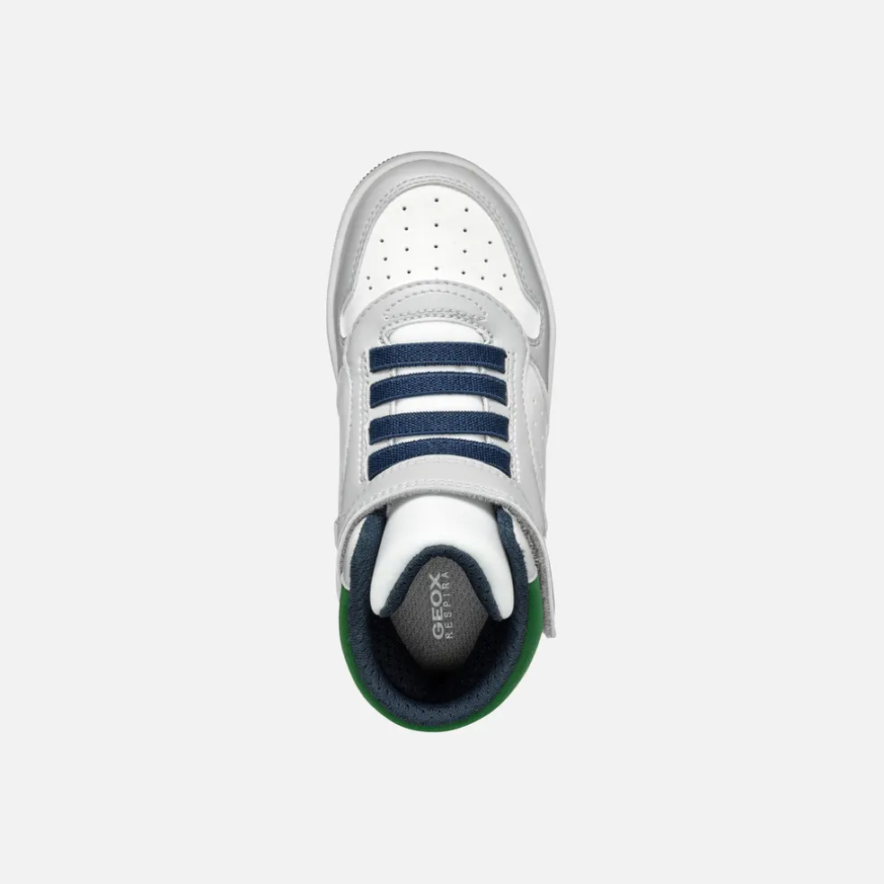 Junior-Mid-Cut-Sneaker im schlichten Design – ideal für die Schule und für Freizeitaktivitäten. In dieser Variante in einer Kombination aus Hellgrau und Dunkelgrün ist Washiba ein unverzichtbares Casual-Modell für die Alltagsgarderobe. Das bequeme, atmungsaktive und leicht zu kombinierende Modell ist aus Material in Lederoptik und in Elasthan gefertigt.