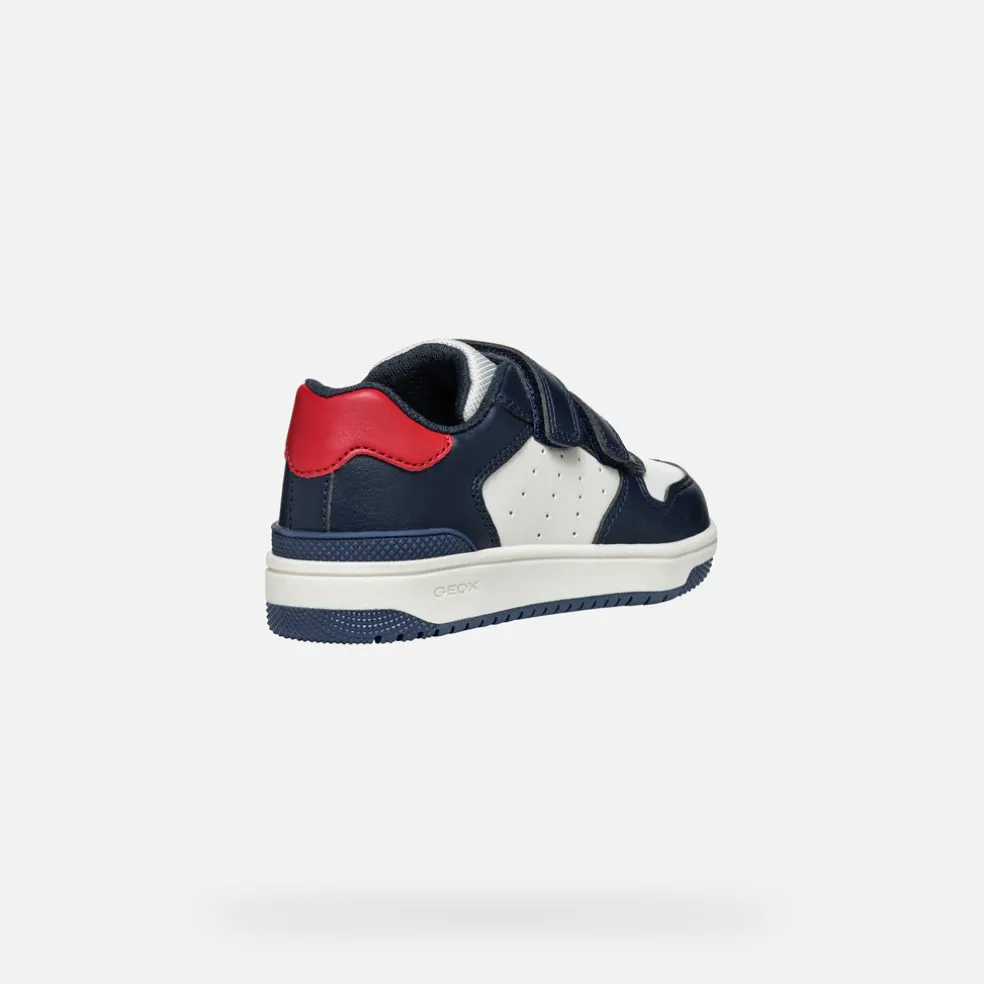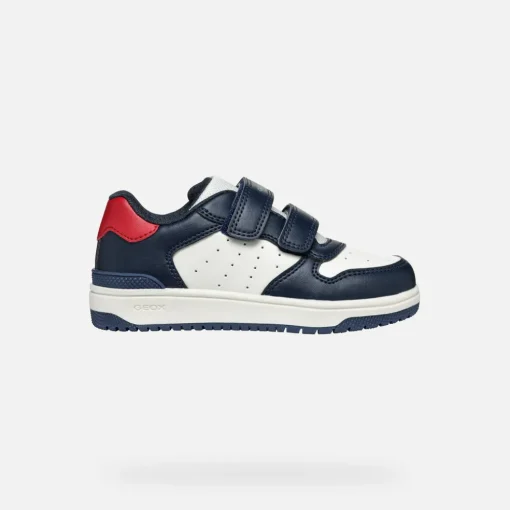 Junior-Low-Cut-Sneaker im schlichten Design – ideal für die Schule und für Freizeitaktivitäten. In dieser Variante in einer Kombination in Marineblau und Weiß ist Washiba ein unverzichtbares Modell im lässigen Look für die Alltagsgarderobe. Der bequeme und atmungsaktive Schuh mit praktischem Doppelklettverschluss hat ein Obermaterial aus Material in Lederoptik.