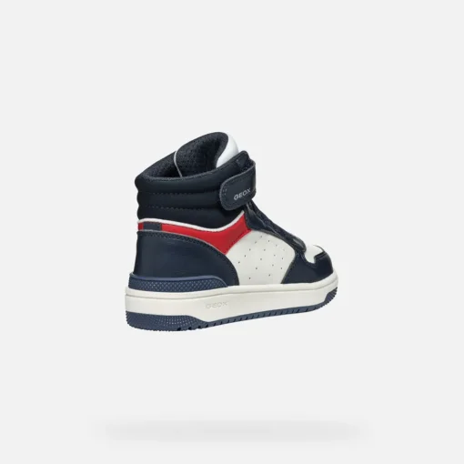 Junior-Mid-Cut-Sneaker im schlichten Design – ideal für die Schule und für Freizeitaktivitäten. In dieser Variante in einer Kombination in Marineblau und Weiß ist Washiba ein unverzichtbares Modell im lässigen Look für die Alltagsgarderobe. Das bequeme, atmungsaktive und leicht zu kombinierende Modell ist aus Material in Lederoptik und in Elasthan gefertigt.