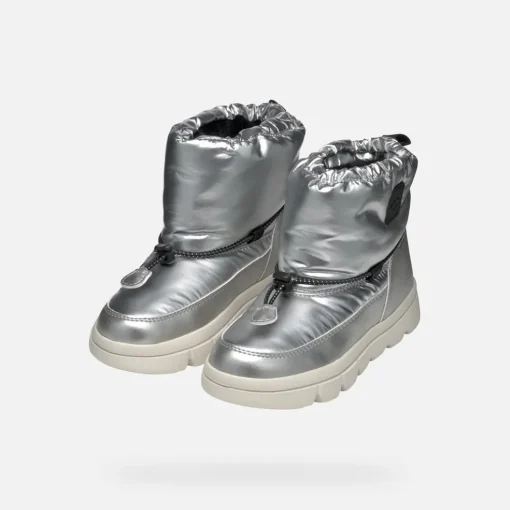 Trendige und warme Slip-on-Stiefelette für Mädchen, der dank Wasserdichtigkeit ideal für Outdoor-Aktivitäten ist. Willaboom ABX ist das perfekte Modell für die Wintergarderobe und wird hier in der ansprechenden Version in Silber und Schwarz vorgeschlagen. Das Modell aus perlenschimmerndem Nylon und Material in Lederoptik mit Perlenschimmer lässt sich mit Tunnelzug anpassen und ist mit einer leichten und flexiblen Sohle ausgerüstet, die für optimale Stoßdämpfung sorgt.
